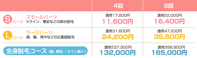 脱毛箇所のご案内